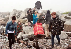 The girls got their game faces on and we headed to Tin Can beach in the South End of Saint John, NB. The rain cleared and the fog stayed, which actually resulted in ideal lighting and a moody atmosphere that we all thought suited the shoot perfectly.