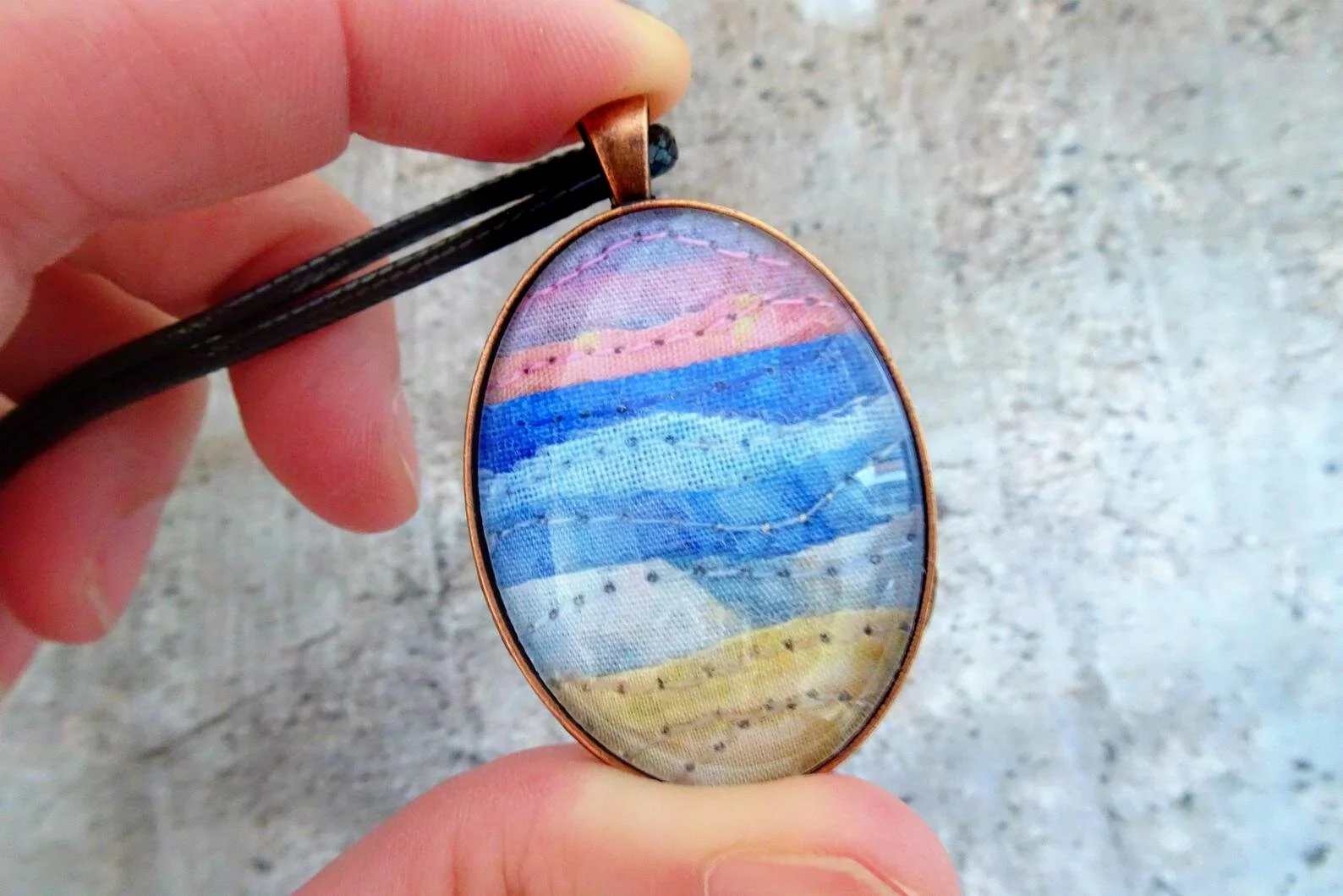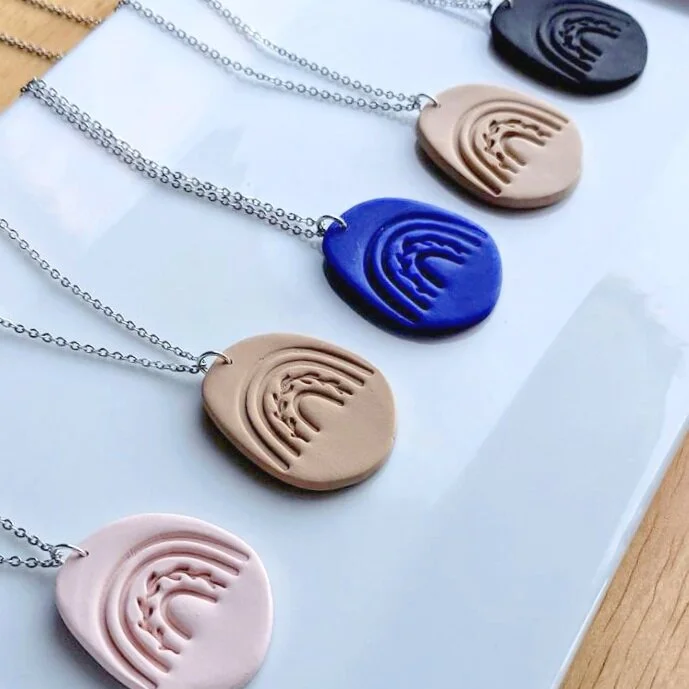 🍉 Landscape Inspired Art Pendant by Darcy Doodle Quilts | 🥎Screen Printed Cotton Napkins Set by Fiddling Ferns | 🐬Watercolour Rainbow Schnauzer Art Print by Squid Tarts Art | ⛱️ Rainbow Texture Necklaces by Juniper Poly Clay
